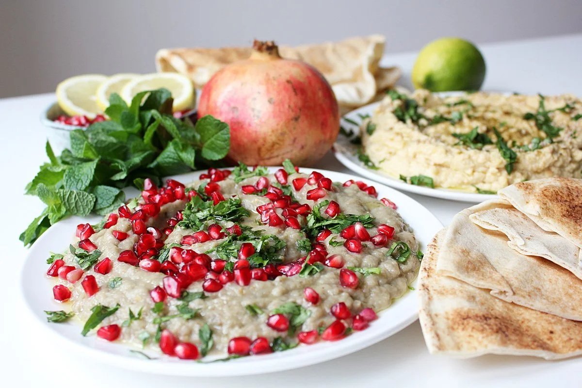 Der Dip ist nicht nur komplett pflanzlich, sondern auch sehr vielseitig: Ob als Teil einer orientalischen Vorspeisenplatte, zum Frühstück mit Fladenbrot, mittags als Beilage zu Salat oder abends mit Hummus und Gemüse – Baba Ghanoush passt eigentlich immer. Besonders bei warmem Wetter sind solche kleinen Teller mit frischen Dips, Brot und Rohkost ideal: unkompliziert, sättigend und leicht.