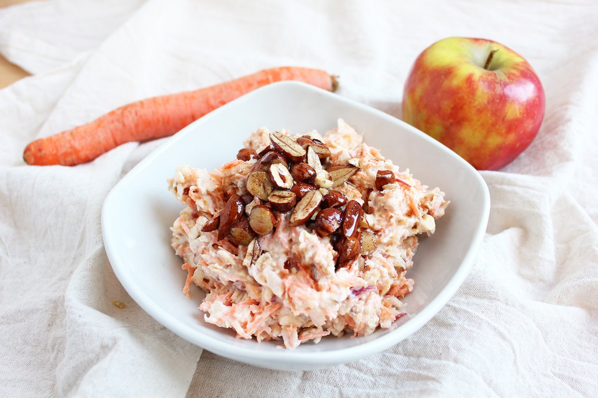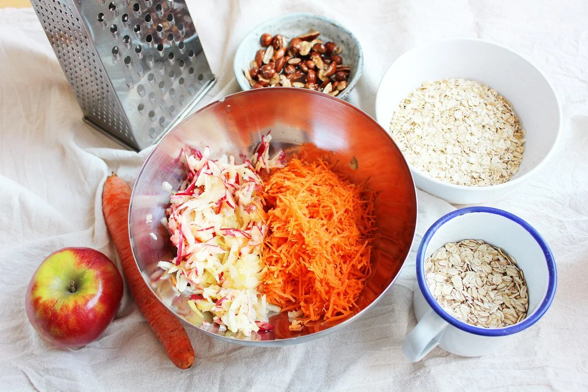 Bircher Müsli stammt ursprünglich aus der Schweiz und wird im klassischen Rezept mit Milch, geriebenem Apfel und Haselnüssen zubereitet. Diese pflanzliche Variante setzt auf pflanzlichen Joghurt und eine feine Zugabe von geriebener Möhre – für extra Frische und Farbe.