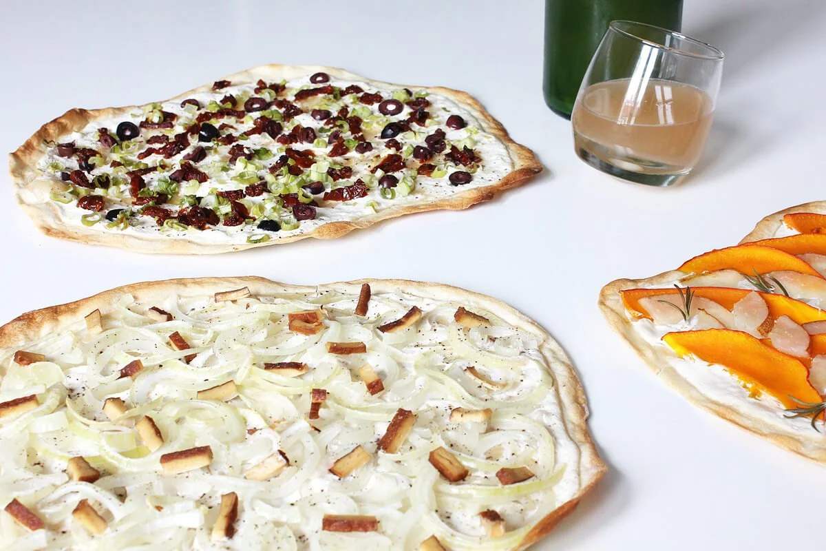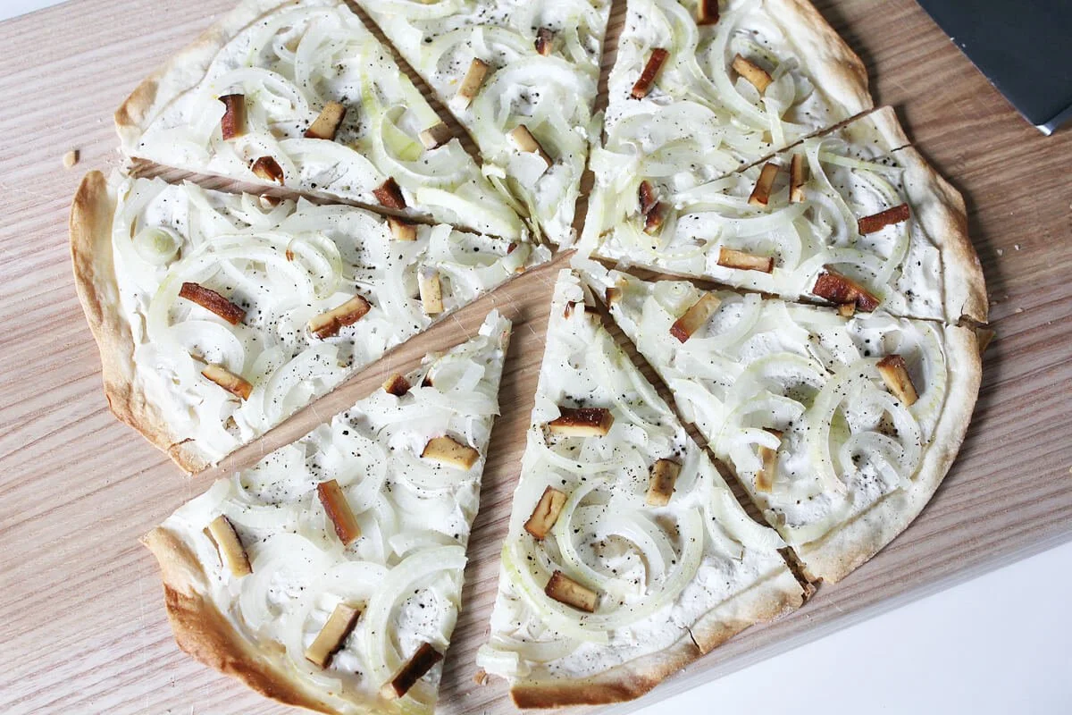 Nichts passt besser zum Herbstbeginn als ein knuspriger Flammkuchen zusammen mit einem Glas Federweißer. Das traditionelle Gericht stammt ursprünglich aus dem Elsass und besteht klassischerweise aus einem hauchdünnen Teigboden, belegt mit Schmand, Zwiebeln und Speck. In dieser veganen Variante zeigt sich, dass herzhafter Genuss auch ganz ohne tierische Produkte wunderbar gelingt.