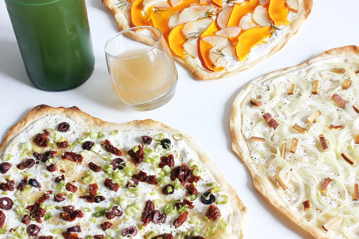 Damit der Flammkuchen-Genuss abwechslungsreich bleibt, gibt es neben der klassischen elsässischen Version zwei herbstliche Alternativen: