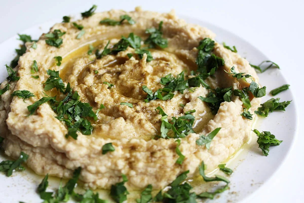 Kaum ein pflanzlicher Dip ist so beliebt wie Hummus. Die cremige Spezialität aus Kichererbsen, Sesampaste und Olivenöl ist aus der modernen Küche kaum noch wegzudenken – ob als Dip, Brotaufstrich oder Beilage zu Meze-Gerichten. Als Nationalgericht ist es fester Bestandteil der Alltagsküche in Ländern wie Israel, Syrien oder dem Libanon – dort wird es häufig täglich gegessen, oft gemeinsam mit frischem Pita-Fladenbrot und anderen Meze wie Baba Ghanoush oder Taboulé.