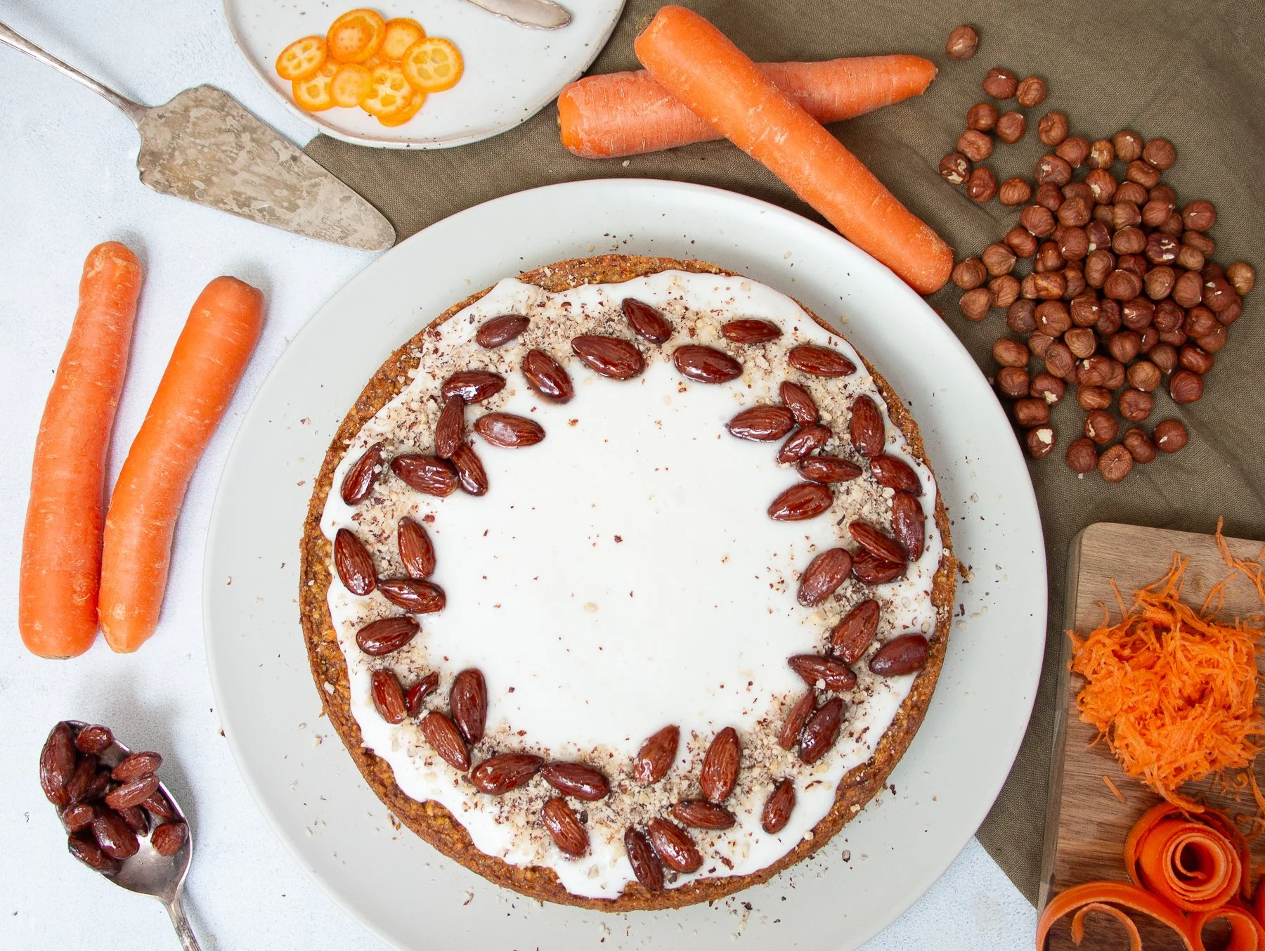 Ein saftiger Karottenkuchen passt eigentlich immer. Gerade rund um die Osterfeiertage ist er ein echter Klassiker aber Karotten sind super Lagerware und das ganze Jahr über verfügbar, was diesen Kuchen zu einem wunderbar unkomplizierten Begleiter durch die kühleren Monate macht.