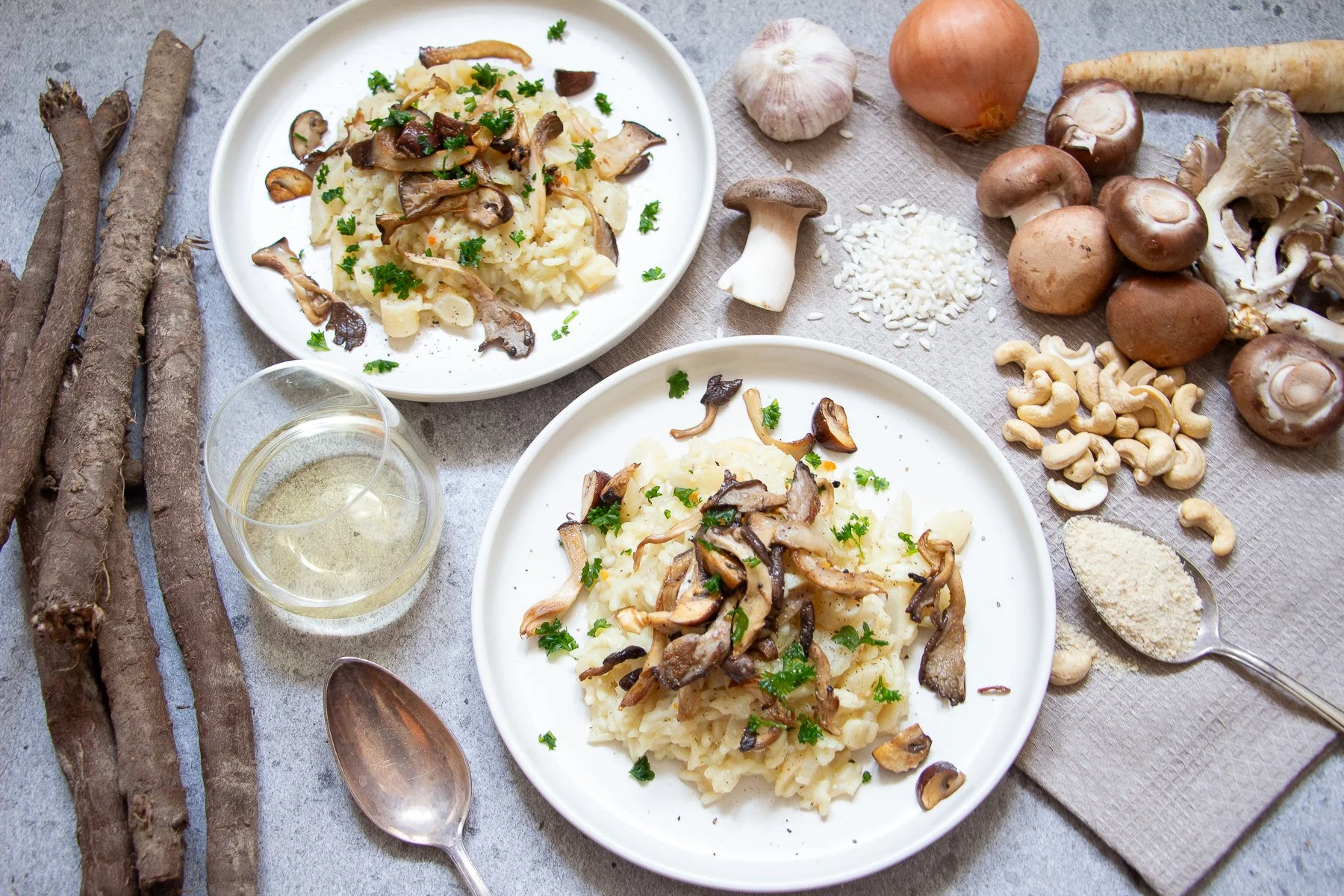 Veganes Risotto mit Schwarzwurzel & Pilzen