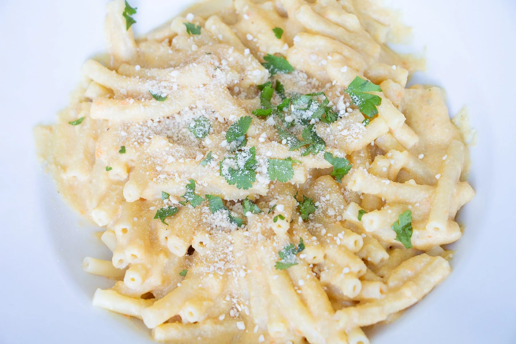 Mac & Cheese geht auch ganz ohne Käse – und das überraschend einfach. Diese vegane Variante überzeugt mit einer cremigen, aromatischen Sauce auf Basis von Gemüse und Cashews, die ganz ohne komplizierte Zutaten auskommt. Alles wird in einem Topf gekocht und anschließend püriert – unkomplizierter geht’s kaum.