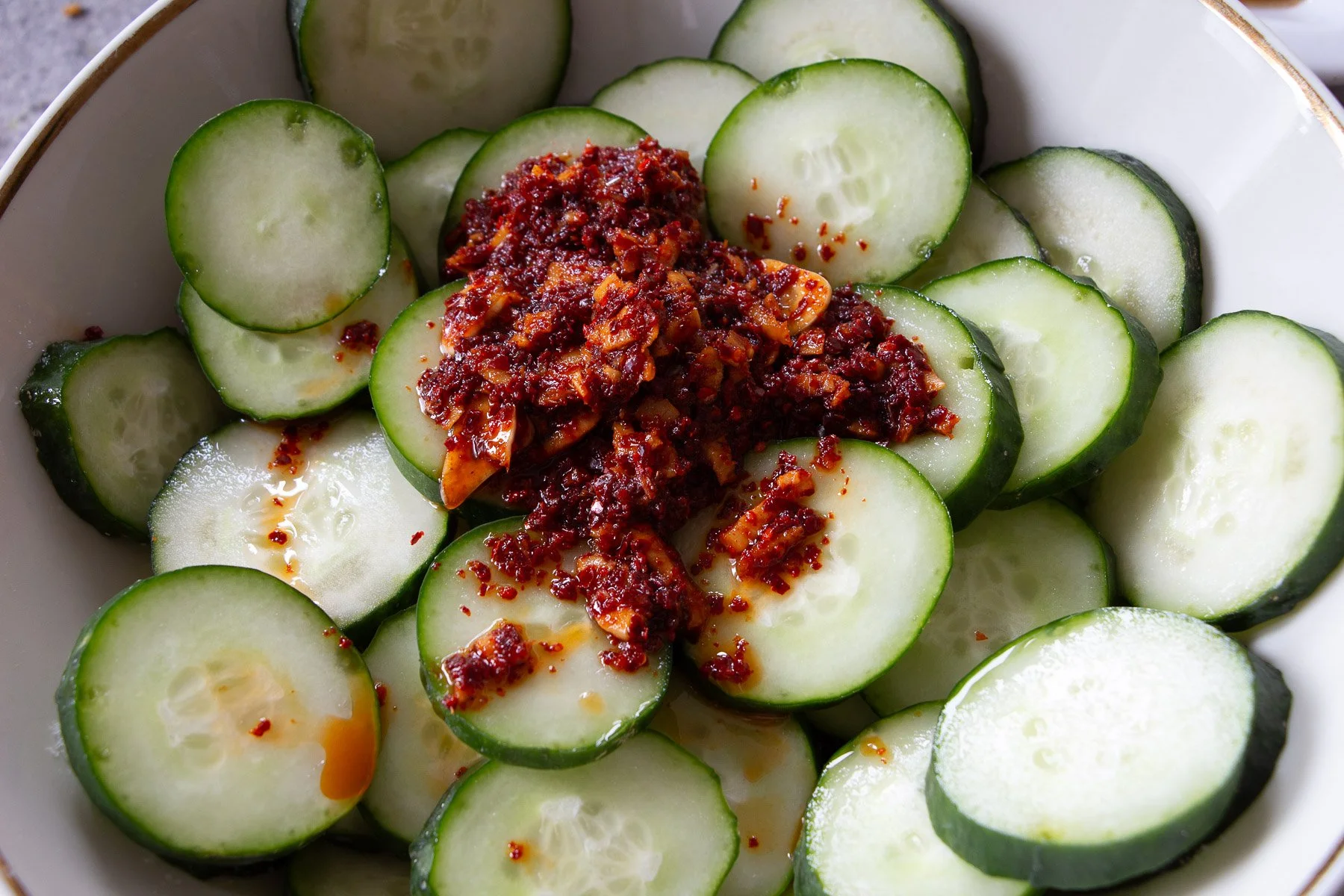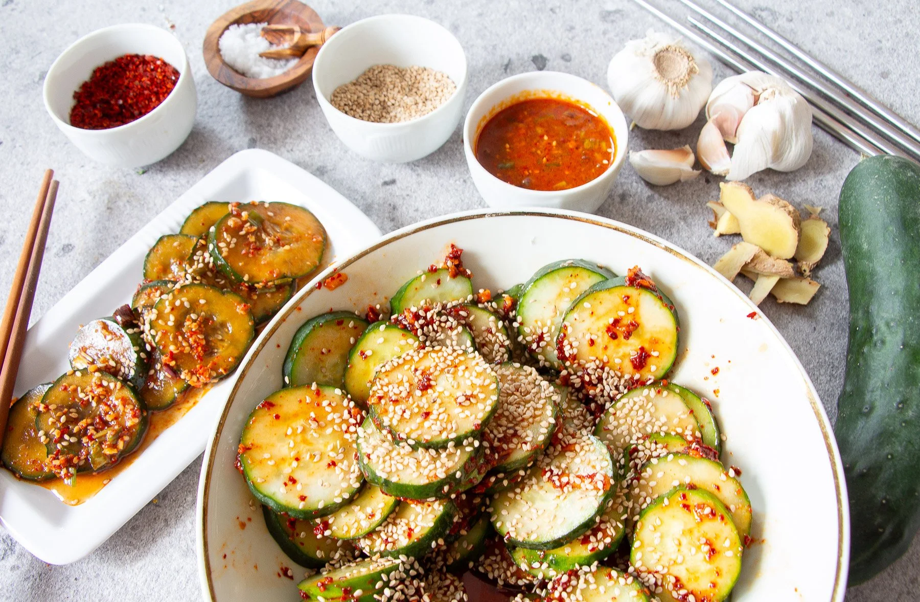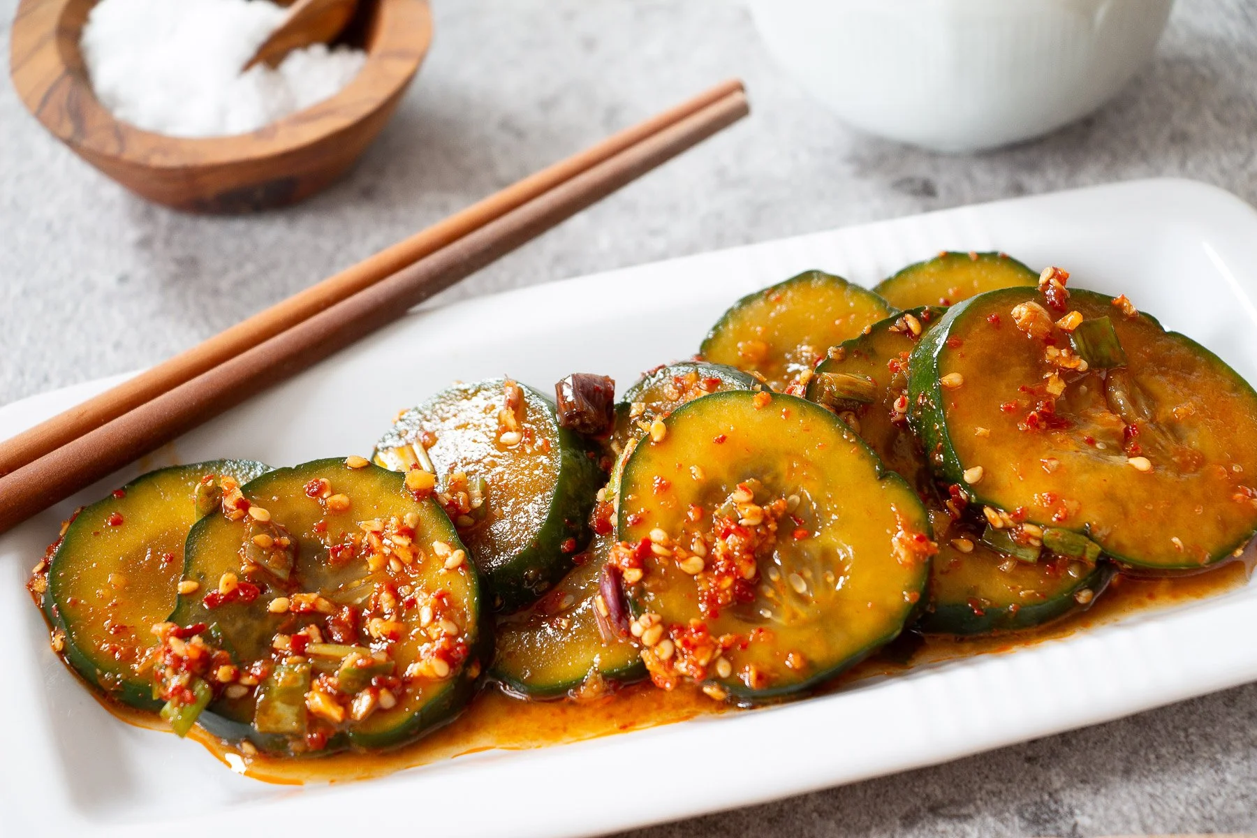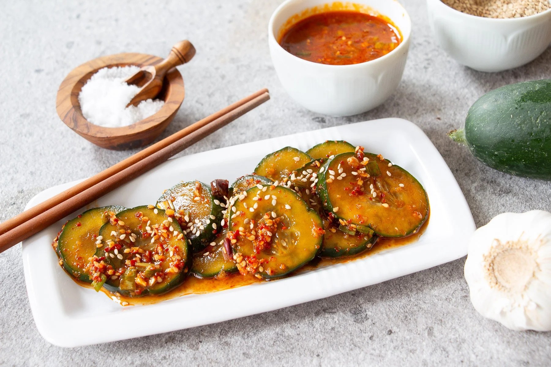 Oi Kimchi ist eine erfrischende, scharfe und schnell fermentierte Variante des klassischen Kimchis – statt Chinakohl kommen hier knackige Gurken zum Einsatz. Perfekt für warme Tage, wenn es etwas leichter und schneller gehen soll. Die Zubereitung ist unkompliziert, die Zutaten überschaubar, und schon nach ein bis zwei Tagen ist das Kimchi genussbereit. Du kannst es aber auch direkt nach dem Mischen ganz frisch als würzigen Salat genießen – ganz ohne Fermentation. Ob als Beilage zu Reisgerichten, als Topping für Bowls oder einfach pur: Oi Kimchi bringt Würze, Säure und Frische auf den Teller.